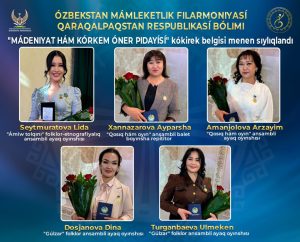 Májilisten soń jıl dawamında kórsetken belsene xızmetleri ushın Ózbekstan mámleketlik filarmoniyası Qaraqalpaqstan Respublikası bóliminiń bir topar dóretiwshi xızmetkerleri Ózbekstan Respublikası Mádeniyat ministrliginiń «Kórkem óner hám mádeniyat pidayısı» kókirek belgisi menen sıylıqlandı.