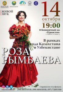 Ро́за Куаны́шевна Рымба́ева казахстанская эстрадная певица, киноактриса и педагог-профессор. Народная артистка Казахской ССР (1986). Заслуженный деятель культуры Кыргызстана (1994). Заслуженная артистка Республики Узбекистан (1994). Лауреат Государственной премии Казахстана (2004).