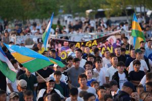 Nókis qalasındaǵı «Ǵárezsizlik» maydanshasında kóp sanlı tamashagóyler úlken kólemdegi monitorda tikkeley efirde quwanıshlı máwritlerge gúwa boldı.