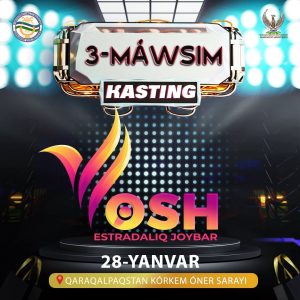 Óz talantın júzege shıǵarıwdı qálewshi estrada kórkem ónerinde óz ornına iye bolıwdı maqset etken hám estrada janrında qosıq aytıwǵa qızıǵıwshı 18 jastan 30 jasqa shekemgi talantlı jaslarımızdı usı jıldıń 28-yanvar kúni saat 10:00de Qaraqalpaqstan kórkem óner sarayında bolıp ótetuǵın «Yosh» estradalıq joybarınıń 3-máwsimi ushın ótkeriletuǵın kastingte kútemiz.