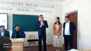 Әйне бүгинги күнде президент қарарын орынлаў мақсетинде филармонияның дөретиўшилик жәмәәти де белсене қатнасып,Мойнақ районы 2-санлы орта мектепте мийманда болды.